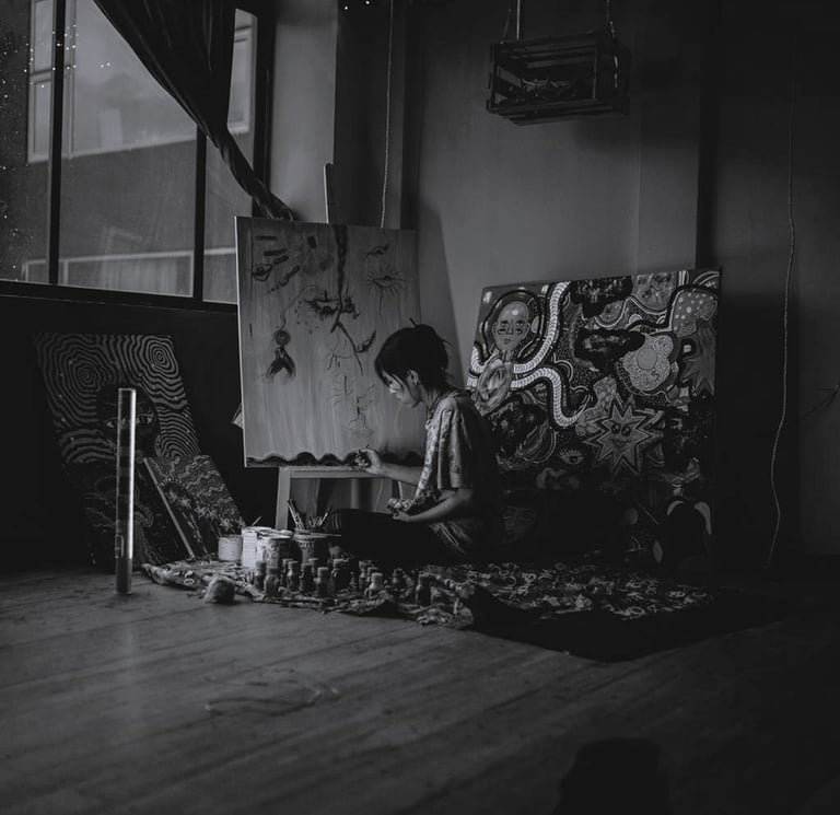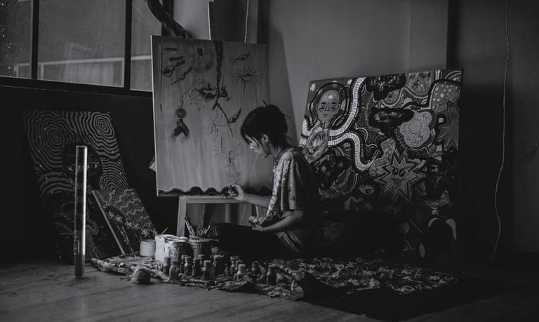 "I believe that art has the power to transcend boundaries and bring people together, and I am committed to using my creativity to promote greater understanding, empathy, and compassion. Whether through bold colors, intricate patterns, or abstract forms, I strive to create paintings that communicate universal truths about the human condition and the interconnectedness of all things".